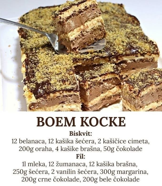 Ako ste u potrazi za kolačem koji je istovremeno elegantan, ukusan i raskošan, Boemske kocke su pravi izbor. Ovaj desert spaja hrskavi biskvit, bogat kremasti fil i čokoladne slojeve, a zahvaljujući svojoj teksturi i vizualnom efektu, idealan je za sve prilike – od porodičnih okupljanja do svečanih proslava.