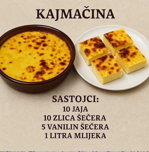 Kajmačina je desert koji ne traži mnogo, a daje toplinu i osjećaj doma. Svaka kašika vraća u prošlost – u dane kad su mirisi vanilije i mlijeka dopirali iz bakinog šporeta.